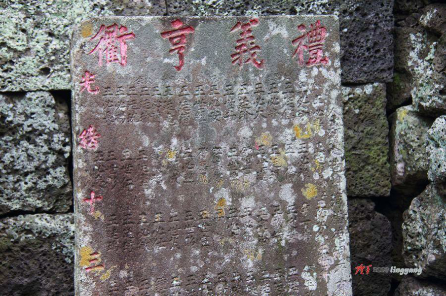 “礼义亨衢”碑立于清光绪十三年(1887 年),是村民捐建“豪贤门”时所立功德 碑。该碑高约 1.5 米,宽 0.5 米。石碑碑面刻记有约百名捐建者名录,并落款“光绪十三 年下月吉立”。 碑名“亨衢”二字来源于唐元稹 《苦雨》诗: “东西生日月,昼夜如转珠。百川朝 巨海,六龙踏亨衢” ,有四通八达的大道之意思,这里“礼义亨衢”的意思也是让礼义 之风尚广通天下之意。