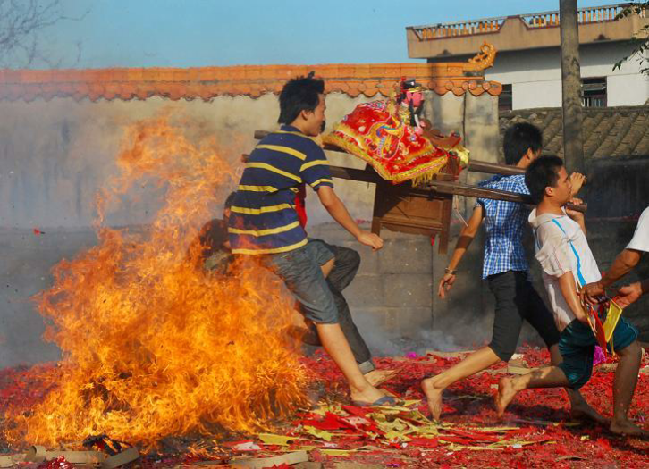 “公期”是火山地区一个重要的传统节日,日期同道教的上元节,一般在正月内,但 各个村落有所不同,有的定于正月初十,有的定于正月十五等。 每逢“公期”,村里要举行隆重的祭祀活动和庆祝活动。首先,村中选出两个“斋头” 负责全村的抬“公”(即村民所供奉的神位)游村祭祀活动,由“斋头”领神到各家各户去 清邪气、送吉祥,八音队敲锣打鼓跟随抬神队伍表演。同时,村民还会邀请亲戚朋友来家 里聚餐,俗称“吃公期”。公期当天,家家户户会拿出家里最好的东西,杀鸡宰羊,做地道 的石山豆腐、石山粉等特色小吃、酿火山米酒来招等亲朋好友。公期当晚,村民集中到庙 里举行拜神祭祀过火山等活动,有时还会请琼剧戏班子到村里演出,热闹非凡。 “公期”时祭拜的 “公”包括关公、班超、昌化老爷、福德正神、梅仙大帝和三清尊 神等,村民同时供奉多类神祉,体现了多种传统文化在本地的融合。
